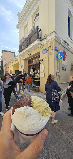 Read moreIce cream, smoothy and drinks to take away in this nice little pedestrian street of downtown Athens. The ice scream is absolutely amazing: we tried dark chocolate sorbet with pears, pistachio & mascarpone with figs. All 3 flavors were a blast. Not too sweet and strong flavors. We wanted some limonade but like in most places it is way too sweet (even though we were told otherwise before beeing offered a sample). Prices for ice cream cups are 3 - 5 - 7 € from small to big size. We would definitely buy another ice cream if we happen to walk...