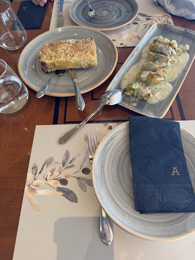Read moreI ate here two evenings in a row, mid March 2024. I suspect that the restaurant underwent renovations in the last decade or so. You get the impression that it has been in this location for very long time but that the modern look is very recent, I would call the atmosphere comfortable and someone’s idea of a modern look. I didn’t care for it personally, but many people will love it. The food was roundly Excellent. I had the stuffed squid one night and the lamb, the next and sausage and beans and plenty of wine and Uzo, everything was very good and as everyone in these reviews remarks quite inexpensive. Maybe 10 or 15% more expensive than a cheap tavern but the food is much better and the serving portions are very large. I would describe the cuisine as a modern take on Greek cooking. But not too modern, like what you ate at grandmas only a little bit better. As everyone here on Google reviews remarks, the weight staff is superb. I would say that the ratio of waitstaff to diners is about twice what it is in the United States. What you get is a large team of eight or 10 very experienced staff, mostly male, ready to appear suddenly when your wine is low or when you need new silverware, everyone there is extremely professional and extremely experienced and there to guarantee you a flawless...