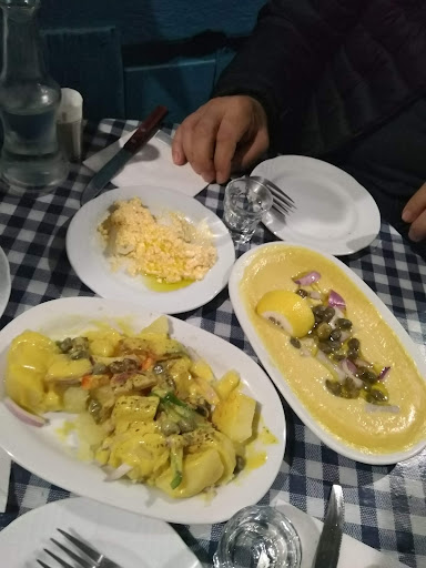 We ordered tirokafteri, fava, potato salad, liver (large), and 200 ml of raki. Raki was ok, tirokafteri was tasty, potato salad was chunky and nothing special. I liked that the liver was juicy, but it's a matter of taste; some might find it a tad undercooked. The fava was steaming and practically in liquid form as it was probably microwaved. Its taste was underwhelming, too. All this and an additional portion of bread cost us 27 Euros. I also inquired about the rakomelo but didn't order when the waiter said they served it cold. I thought the service was fast; the bread and raki came first, then the mezes appeared one by one, and before we were done with them the liver was served.