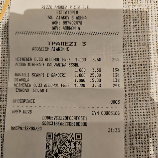 TRULY AWFUL EXPERIENCE! We’ve been in Athens for the past 5 days and dined out every night having some wonderful meals - This was the complete opposite and was a total and utter disaster from start to finish. We didn’t even end up staying for our mains after our starters took an hour and twenty minutes to come out with only two arriving and then having to wait a further 15 minutes for the other starter which was cold and supposed to be hot. After ordering starters our waitress came over 20 minutes later to tell us they don’t actually have any mussels… How does it take 20 minutes to inform a guest of that from ordering? After working in hospitality in my younger years, I am fully aware that a table shouldn’t wait any longer than 10 minutes for a starter never mind 20 minutes to be told they don’t have what you ordered! Believe it or not, one of the mains actually came out before any of the starters and after us explaining to the manager that our starters haven’t even arrived yet, he said ‘Well, can I just leave this here?’ (On our table). Before any starters have arrived? Never seen that before in a restaurant and in hindsight we should have left then as his cluelessness about how bad he was coming across whilst at the table was such a major red flag. We decided to give them the benefit of the doubt as we were starving after a long day, but unfortunately it just kept going from bad to worse and we eventually left without having our mains with the manager refusing any discount or goodwill gesture, and after wasting our evening and ending a wonderful day in an upsetting way, this was hard to accept, but was an accurate reflection of how this place is ran. Genuinely never seen such incompetence from a manager in a supposedly decent restaurant before and their excuse was that they are really busy and only have two chefs… How it that the customers fault?! If you don’t have the chefs to run a kitchen then manage your bookings accordingly and don’t waste people’s time and hard earned money with woeful service and a bad attitude to go with it. I would honestly advise avoiding this place at all costs if you want an enjoyable dining experience and one that represents the prices they charge. Would rate 0 out of 5 if there was an option to do so. AVOID...
