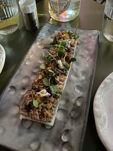 Food service wasn’t better: the waiter wasn’t rude, but clearly unprofessional - no menu for a long time, no explanations, and vague answers when asked for recommendations. Even the open kitchen, which is supposed to be a highlight, felt careless - one of the cooks was scrolling on her phone right in front of us before going back to cooking without washing her hands.