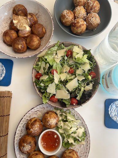 The poffies are an amazing idea, similar to donuts but not so heavy. They have other food on the menu but if you go I highly recommend getting the poffies. We ordered the green salad, the feta & honey filled poffies, ground beef filled poffies, and sweet poffies topped with butter and cinnamon. The poffies were so light and fluffy. all were amazing!
