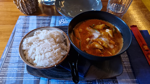 Really disappointing! We came by Blue Bamboo restaurant last evening and the restaurant was buzzing. Because of this and the good online reviews, we decided to dine there this evening and we're massively disappointed. The restaurant is clean and has a nice atmosphere, apart from the jazz music playing which does not suite the concept. The dishes on the menu sounded nice and appatizing, however this was not authentic Thai cuisine. We started off with the papaya salad, which was too acidy and lacked any sweetness of papaya. The shrimps did not taste fresh and the dish was not at all spicy as supposed to the menu description. For main course we had the Singapore noodles and the red curry. The noodle dish looked really unappetising and tasted massively of glutamate. Way too much curry powder was used and there were hardly any vegetables in the dish. The curry was overcooked and served with sour creme on top, which made it obvious, that the chefs don't know Thai cuisine. Needless to say, we didn't finish our dishes. When the waiter came to clear the table we were asked if we didn't like it. We agreed and pointed out that we were in fact very disappointed with the food. He just acknowledged this with an 'ok' without any further questions or enquiry for further feedback, which demonstrates a lack of hospitality skills. Can absolutely not understand where the good reviews come from. Overall, this was a really disappointing dinner and we would not...