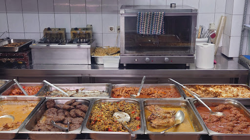 The food is served cafeteria style, so you order at the counter but you can choose to sit at a table. Seated meals include bread and water and takeaway is an option.