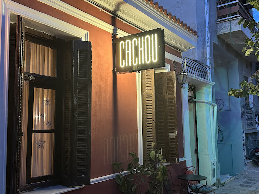 Read moreTonight is our last night in Greece. Sad, yes, but we ended our three week trip here with a superb meal at Cachou. The experience began with a warm welcome. While they offer outdoor dining, we decided to eat inside in a charming area with stone walls, exceptionally comfortable chairs and tables, and a fireplace right out of a Melina Mercouri movie. Please see the attached pictures. The food was amazing! We met the chef, Demetrios, who is talented and passionate about his food. The pictures of his dishes speak for themselves! Given the exceptional level of service and amazing quality of the dishes served, Cachou is an...