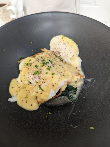Nice café, relaxing atmosphere and good food, a bit pricier than most brunch options in the centre. Tried the poached eggs with the potatoes and spinach - the idea seems to be there but the execution fell slightly short. The crispy potatoes got a bit too soggy and there was essentially some broth produced which didn't fit with the expectation of eggs with hollandaise. Taste is still great, the dish is nice but at its price point you sort of want that finer detail. Scrambled eggs were very smooth, the avocado spread beautifully seasoned, the salad fell short to the quality of the main aspects. The Basque cheesecake with the qumquat marmelade was much more pleasant - fresh, smooth, balanced. The plants against a white backdrop do resemble of Cyclades islands while there's relaxing, discreet music in the background. I might visit again with a view of having dessert or coffee only although I feel that it's worth exploring more of the menu, that seems more unique than most...