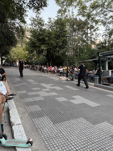 Read moreThe historic café of Kolonaki, where once Kazantzakis, and Varnalis used to gather at its tables, is located on the pedestrian street outside the Dexameni open-air cinema. Papadiamantis referred to it as a "nipiagogio-bar-girokomio" and this description is noted in its catalogs and the t-shirts of the employees. They serve coffee from early in the morning, followed by ouzo and tsipouro with later appetizers. The appetizers range from 5-6€ each, which is quite reasonable considering the prices in Kolonaki, and the portion sizes are satisfying for their price. On weekends, there is an endless queue to find a seat. The service has its ups and downs. Make sure to try the semolina halva with ice cream;...