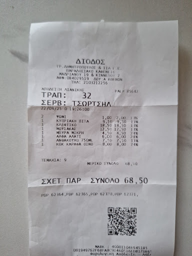 Read moreIt was my first time in Greece at all and 1st day in Athens. We had dinner at Diodos (Δίοδος Αρχαίας Αγοράς) and it was a truly memorable experience. We tried moussaka and kleftiko: Moussaka is a traditional Greek baked dish with layers of eggplant, potatoes, minced meat and béchamel – creamy, rich and absolutely delicious. -Kleftiko is slow-baked lamb with vegetables wrapped in parchment. Its origin goes back to the klephts (mountain rebels), who used to cook meat secretly underground so the smoke wouldn’t reveal their hiding places. Both dishes were heavenly — tender, flavorful, and perfectly cooked. We also enjoyed their house wine, which you can even take away in a plastic bottle. A lovely touch was the complimentary panna cotta with caramel and homemade liqueur at the end of the meal. The view of the Acropolis is stunning, especially at sunset, and the sound of nearby church bells every half hour adds an authentic Greek charm. Outdoor seating is very pleasant, with water mist sprayers under the awning to keep you cool in the heat. The interior is authentic as well, and even the bathroom upstairs felt unique — almost like entering a small hammam, very clean and unusual for a restaurant.