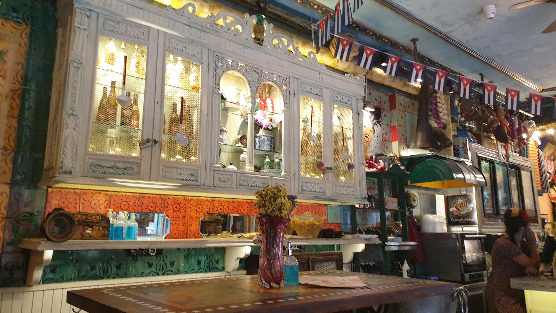 There is something disturbing going on in Athens with absentminded waitresses in general recently. This lady came to our table and stood in front of us while her head was turned looking at her colleagues, or whoever was sitting by the bar, and was smiling at them, participating completely in their conversation, full on ignoring us. Each time she turned around and I tried to open my mouth to order, she turned away again and kept on listening on them. She FINALLY absentmindedly turned and mechanically asked what we wanted and immediately turned her head AGAIN and continued to listen to that conversation and laugh. This happened repeatedly for a good two minutes. At some point I waved my hand almost to her face and smiling I said "ehhh Hello?!" She looked at mee but was not connecting to what was happening. That she actually was supposed to be doing a job. Which was, take an order. A potato can take an order. NOT her though. She continued laughing and looking away, ignoring my questions, ignoring her ONE job she had. She didn't even excuse herself, she could say "sorry guys but THIS I gotta listen to." I would say to her to take ALL the time in the world. It's perfectly fine! But you MUST acknowledge that this is NOT normal and that you are in fact supposed to be paying attention to the customer. But we ARE humans and it's of course ok to be able to relax and not follow the norms now and then. But THIS was extravagant! She at some point gave a half answer and I ordered an iced coffee. She, by accident heard me and finally took the order. The coffee was alright. (someone else made it) Then, despite that horrible behaviour we decided to stay a little more and try a cocktail. This is a Cuban bar yes? A mojito must be at least good. But the bartenders were nowhere to be found. So after a struggle to call her back to our table, we ordered! Phew! But, when you see a waitress looking at the recipe of a cocktail while making it... you know you are getting a rotten lemon. This was the worse mojito I ever had. HORRIBLE both our cocktails. I don't know if the bartenders had gone to lunch or siesta. And I don't know how the cocktails are normally there. But this warm lemon juice with the 2 mint leaves could not be representative of the place. It's a shame. Because the place is GREAT! The environment. The music. EVERYONE working there apart from that person. She was acting like the teenage daughter of the owner who is forced to work there while her friends are sitting by the bar having a good time and she HATED it. This is NOT a personal attack. That person was not a teenager and I know nothing about them. But when you work in service you should at LEAST try to take an order. Question, answer, suggest and serve. You don't even have to smile. But TAKE the bleeding order lady. Also, if you work at a Cuban bar and don't know how to make a mojito ... please don't...