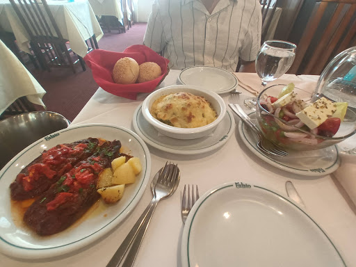 A lovely room with attentive, friendly service. We went at lunchtime and food was provided cafeteria style... one points out their choices, and it's brought to the table. The food is good home style greek classics which I wish came out a bit warmer. The quality of the tomatoes in the greek salad suffered from having been refrigerated... in fact they were stone cold. Nonetheless, paired with a litre of the pleasant house wine, we enjoyed our...