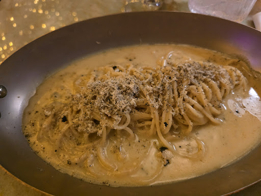 I never leave poor reviews lightly and I've waited to do so to be less annoyed about our experiences. I was baffled actually that this highly rated and expensive restaurant could have treated us this poorly twice. We went late on a Saturday, and it was packed, we had a table in the far back corner with mainly large groups around us celebrating. It's that kind of place, has a loud party vibe but is fine dining with chic decor. People clearly come here for special occasions and a good time. We ourselves wanted the same. We had been to a few bars before dinner and were ready to continue our evening here. The guy who first served us was friendly but we waited so long to even order, probably 30 mins, then we only had a bread and feta spread and a main course each and we actually were there over 2 hours, the evening just dragged. Our wine was in a bucket across the room, my husband had to rescue it because otherwise we wouldn'thave had it with our food. No service in sight. Shortly after we arrived the table next to us left and it was at least 25 minutes before anyone cleared anything from it. This is acceptable in a cafe, but here this was shoddy and clearly they didn't have enough staff. The food was delicious. I loved the Cacio e pepe pasta, one of the best I've ever had. The chicken dish with crispy potatoes was also excellent. But my pasta, that I'd waited ages for, was cold. I would have said something but couldn't find anyone. So we just ate the food. When we were done we wanted to go to the bar, we had asked before dinner to reserve us a space for after we ate and they had said 'of course'. When we tried to ask if it was ready we were told 'of course' again and asked to wait one moment... well time went by, nothing, nobody. Then we ask again and he says 5 mins. 20 mins later I went back to the room. My husband stayed to speak to the manager. The whole meal had been a buzz kill. They offered us free drinks and dessert and said there was only space outside and not at the bar but I was already undressed and ready for bed when we got this offer. We had a couple of items removed from our bill by way of apology.