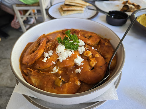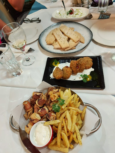 Read moreOnline this restaurant gets an above average score of 4,7 so we decided to eat here. I did not expect it to be one of the restaurants in such a bussy,touristy area because I usually avoid those places. We were welcomed in, not persuaded in. We decided on some shared starters and orderd white wine. The server was really friendly and enthausiastic. He recommended a different wine for us and told us we could get a discount. because otherwise it would not be sold in time with less tourists. Everybody liked that wine and we were still talking about it the rest of the week! (Assyrtiko (Toplou Monastery)). We decied to share starters, fried squid was recommended so we tried it. Also tried the sundried tomato and tzatziki. Liked everything! 2 people had the seabass filet, it was really good but the beans were nothing special. The shrimps were dry unfortunatly as well as the chicken souvlaki so maybe try something else. I do recommend the pork souvlaki it was the nicest I had in Athens. I recommend making a reservation on there website sinds it was the only bussy place in the street that night. Overall very enjoyable experience with enthausiastic servers to create a good ambiance. We also got greek yoghurt, I think it was...