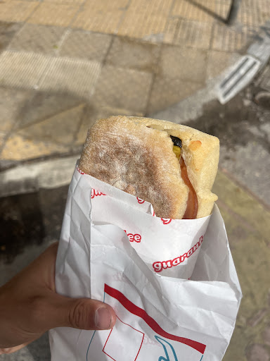 Read moreWe went in here on a recommendation. Since they were busy and both our Greek and our knowledge of the enormous selection of ingredients was limited, we just asked them to make us a sandwich. They asked for a bit of guidance, but since we enjoy most everything, we just told them to make us something. The result was an amazing sandwich with at least one ingredient we had never heard of. The cashew based pesto like sauce was amazing. A family of sandwich artist runs this place, and they are masters. A short walk from Syggrou Fix or Acropolis metro stations (closer to SF) and right on a main bus line, there is no excuse not to eat here. If you are visiting the Acropolis, instead of stopping at one of the fancy places in front of the museum, turn right on your way down the hill, pass the fancy places, cross the street onto Veikou, and walk a few blocks to Guarantee on your left. There is often a line, but you won't regret the wait. This is a sandwich counter, with only a couple of window sill seat outside, so don't expect seating. A little...