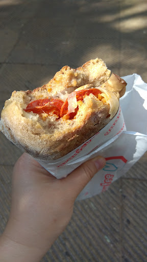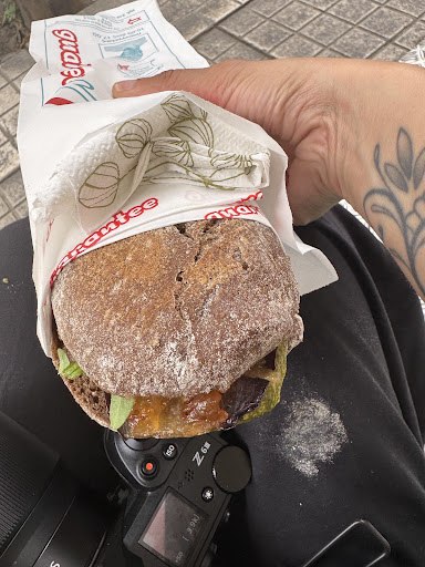 Read moreWhy i put two stars. It is also funny that not a single reviewer noticed the big disadvantage when buying from this shop. While the shop is excellent in the difficult task of providing a quality sandwich, but fails in a much easier target: to provide an acceptable service. With this, i find unacceptable to have me waiting for 15-20 minutes in order to make a sandwich. Is it justified? No, because i can take a look and see that you have three people and you are not so occupied. You just create a delay in order to create a stack of people outside of your shop and make it more visible to potential customers that pass by. It is unacceptable to see all of you just waiting for the pan to fry mushrooms, while one of you could easily make a sandwich for the other customer in one minute and avoid have him waiting there standing. Service is unacceptable, and even i know you make good sandwiches i will have to avoid buying from you in the small time frame i have when taking a break from my work here. If you want to make your shop known, invest in commercials, and not on your own customers by putting them standing outside of your shop. Always respect your customers! And wash the dirty...