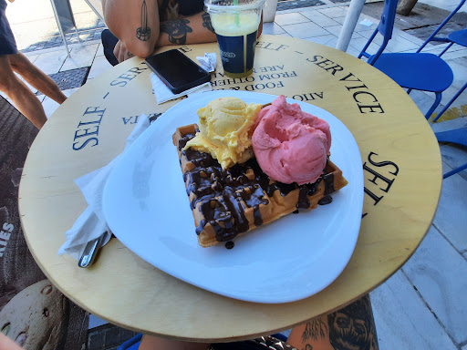 Read moreAbsolutely disgusted in the service I received at this shop today. Was in a group of 4 and we had bought some gyros from a shop next door which had no seats left, so we sat down at this ice cream place and decided to buy a couple of juices. One of us went up to the counter and bought 2 juices (which cost 9 euros) and as soon as he came back to the table the lady from the shop started screaming at us to leave because we had food from another shop even though we had just purchased 2 juices. She continued to scream in all of our faces and basically pushed us out of the store. I went back in the store with the 2 untouched juices and asked for a refund since we were not allowed to sit at the store and they refused. Absolutely horrible service, these people need to learn how to treat paying customers with respect and if we are not allowed to sit down with food from another shop then this should have been vocalised BEFORE we purchased our drinks, instead of waiting until AFTER they had taken our money to scream at us....
