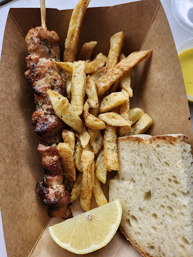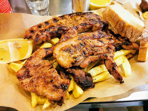 Read moreWow! What a deal. Not only is it inexpensive but but it's absolutely delicious. The pork stick, for 2.5€, comes with fries and a piece of bread. What? The we had an order of the marinated pork belly. Same deal. This was 8€. You get 3 pieces of pork belly, fries, and a piece of bread. If you're on a budget or want to grab a quick snack...t his is the place to go. T Remember, this is a quick bite place. They have a few stools and a counter. Because it is always busy, it can be tricky to sit and eat. Regardless, you must try it when...