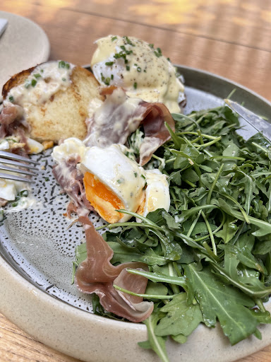 Position is great. Our waiter, we could not fault. He took our orders promptly. Then we waited 10-15 mins for our coffees. There were only a couple of other tables with guests so not sure why it took so long. Not long after that our breakfast came out. When we finished I tried to get the attention of one of the 3 waitresses standing around playing with their hair and nails . One of the chefs came out of the kit hen and noticed me and told the waitresses to come over. They did not, not until their conversation was finished I asked for the bill 3 times all up. It took another 10-15 mins to get the bill even though I had mentioned we had an appointment to get to. Needless to say we were late. It is such a shame the service is so slow, because there were people waiting for a table for longer...