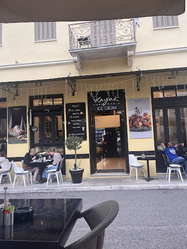 Read moreVery disappointing experience: we went to Kayak Plaka today , as we usually do after going to the restaurant across the street, myself my husband and our 6year old. We had one ice cream scoop in a paper cup each and a coffee to go. I was holding 4 shopping bags, so while holding the bags and my ice-cream cup in one hand and the disposable spoon in the other, I sat on a chair next to the cashier waiting for my husband to eat his ice cream while he was standing up: he would then take the bags, and we could start walking on our way to our car holding any unfinished ice-cream and the coffee. But the waitress came and said that I was sitting and according to their policy we would need to pay more, we said that we are not exactly sitting and we were about to go (my husband was eating while standing up, I was still holding the 4 shopping bags ,we had no proper cutlery or ice-cream bowls, no waitress etc.) The waitress came then and brought water to the table and asked for 4 euros more, we paid, we tossed ourselves any finished paper ice-cream cups and took the rest and the coffee to go and left, all this didn't take more than 5 minutes, I guess they charge 1 euro per min if you need to hang around the cashier for any reason before you leave the store?? RUDE – a good thing though that the whole area is full of other ice-cream places, I guess it is time...
