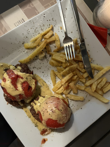 We ordered starters and a steak each. They both arrived at basically the same time and we literally couldnāt even fit our plates on the table so had to drag another one over without help from anyone. The steak was like rubber and overdone despite me asking for it medium. We asked for peppered sauce with it (itās on the menu) and were told it would take ā1-2 minutes to prepareā.
