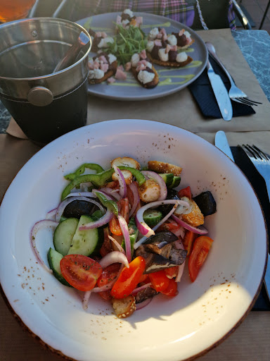 Even with these (I know!) very difficult terms they managed to find us all a very well tasting meal (greek salad minus feta for one, calamari for another and the last had bruschetta)