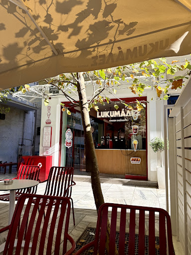 I really enjoy this friendly place just in from the corner of the bustling street, diagonally across from the ancient Arch of Hadrian, into the pedestrian friendly street entrance to the charming Plaka neighborhood of Athens, Greece. Their outdoor seating area in front is blessed by a shady canopy of cooling trees, filled with singing cicadas, and loudly chirping flocks of wild parrots. It is the perfect respite from the intense heat of the sun to enjoy an iced coffee, or a cold water, or fresh squeezed orange juice, or their specialty, a donut called “Lukumades”, served with gelato and your choice of toppings and donut fillings. The entrances to the Acropolis and the Acropolis Museum are just up the street, two short blocks. This is a relaxing, and peaceful place to sit, hang out and watch the world go by. I’m vegan, and they have plant milk alternatives for coffee drinks. The Lukumades and gelatos are not vegan, except for their...