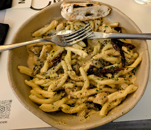 Anyways, the price is not even the issue: it's just that the food is really nothing special: the salad tasted like it was made with the cherry tomatoes from the OK market around the corner with industrial mini mozzarella balls from the dairy section. The pasta was the smallest rigatoni I've ever seen. The wine was good but 8 euros for a glass? It's a great restaurant for taking pictures and posting on Instagram: everything looks good on camera but the taste is simply not there. I guess they spent all their money on the interior designer but had none left for the chef and the ingredients...