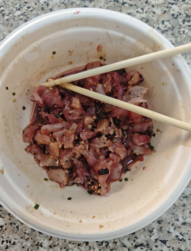 The sushi we ordered here turned out to be overpriced, especially because the quality didn’t justify the cost. We sampled three different rolls, and none were worth it: the sushi rice, meant to be light and fluffy, was pressed together and hard, and the fish was drowned in sauce, making it hard to taste anything else. We saw other dishes on nearby tables that looked a bit more appealing, but I doubt...