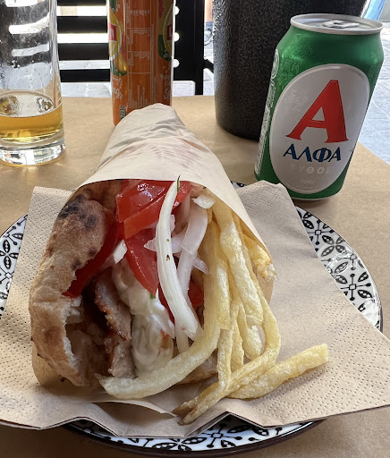 Read moreWas looking for a bite on my way to the airport. Took an order to go- the serivce was really good. Waiting time was okay. Going back to the food- ordered two souvlakis. My first impression was good pita seemed toasted slightly. From this point it only got worse. French fries were tiny and quickly got soft and unapetising. Pita became soaked with the sauce and all was lacking spicing and salt. To get to the meat you had to bite through soaked pita. Meat was tasty but i found a chewy piece. I was really disappointed. Another thing is a price point- 4.10 for one very average and bland souvlaki. You can move out of the touristic centre and taste amazing packed with meat and tzatziki souvlaki for 3-3.50 (and its not about the price difference but more about price/quality ratio). And yes i know that when you order souvlaki to go you need to be aware of it getting moist. I had multiple orders during my stay but the stucture of others was much better and much rich with ingridients. Wont...