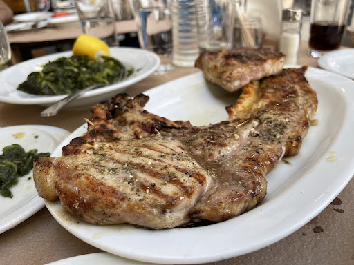 I went here because of the glowing reviews and was definitely not disappointed. The food was amazing and the service was top notch! Our server was fun and very friendly. My family and I are from the states and wanted to try some traditional dishes. I ordered the giant pork steak which was amazing along with some homemade Greek potato salad (simple yet delicious). The table also got kebab, calamari, prawns, steak, fried cheese, baked feta, Greek salad and some delicious tzatziki sauce. Everything was perfect. A good amount of food for a very reasonable price. I would've taken more pictures but the food was eaten almost as quick as it came out. I most certainly will try and eat here again before we have to leave. Thank you to the owner and cooks who prepared our...