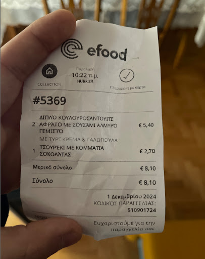Read moreΔεν είναι η πρώτη φορα που παραγγέλνω απο εκεί αλλά το σημερινό σηκώνει μεγάλη συζήτηση γιατί νομίζουν ότι τρώμε σανό ! Παράγγειλα 2 δίπλα γεμιστά κουλούρια και έστειλαν απλά ! Σε συζήτηση με την efood είπαν ότι δεν το είχαν το προϊόν. Αρα αντί να ακυρώσουν την παραγγελία ή να με ενημερώσουν οι ίδιοι μήπως ήθελα κάτι άλλο προτίμησαν να στείλουν κάτι άλλο ελπίζοντας ότι δεν θα το προσέξω ότι δεν θα δώσω σημασία, βγαίνοντας κιόλας δίπλα κερδισμένοι μιας και έστειλαν φθηνότερο προϊόν ! Τα συμπεράσματα δικά σας! Το σίγουρο είναι ότι δεν θα ξανά πάρω από εκεί ! Γιατί μάλλον δεν σέβονται ούτε εκτιμούν τον πελάτη - συναθρώπο τους και επιλέγουν να...