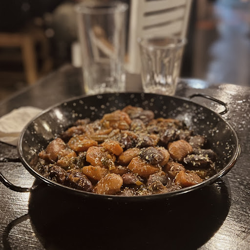 At Mperekéti you will find a relaxed place with amazing food and nice drinks. The staff are very attentive and courteous. There is both outdoor and indoor seating, so you can enjoy the lively atmosphere of Exarchia while savouring delicious dishes. There are many vegan (and traditional Greek) options on the menu. Every dish was absolutely delicious. The selection of drinks offers something for everyone at reasonable prices. For an example order of a 0.5 carafe of wine, there is always a (warm) starter to go with it (e.g. broad beans, beetroot salad). Mperekéti is a undeniably a fantastic place to enjoy an evening in Exarchia and was definitely one of my highlights.