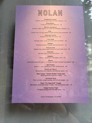 Read moreIt was my absolutely favorite restaurant when I lived in Athens 3 years ago, I had lunch/dinner here 1-3 times a week. Last week I couldn't wait to come there to celebrate my baby's birthday and to show my partner my favorite place in Athens. What I didn't know - there was a recent change in chef/menu/service. And it was a heartbreaking experience. The service was horrible. The waitress twice offered us to leave if we didn't like the menu and stopped from pouring free (!) tap water (although we didn't plan to leave and we looking through the menu). Instead of sharing about new chef or highlighting menu favorites, or chatting about our preferences, she was purely cold and rude. We were the only people in the restaurant (inside and out) all the time of our visit, and there was minimal needed service. And still, she asked for tips. We usually give tips without asking us, and this case we left tips to just get away from there, we wouldn't. And we hated the experience. The menu is meh. We didn't have much choice as before, so we ordered three dishes (cucumber, cabbage and crab). All were cold, like from a fridge. Cucumber and cabbage were same in taste - just added yogurt to a vegetable. Crab was ok. No bread, no cornbread, no rice, all good was fridge cold - there was nothing to share with the baby. We couldn't wait to just leave. We ate it in 15 min and left. NOTHING to compare with dishes at Nolan before. There was no one. Usually, it was a miracle to get a table only outside and only during lunch without reservation. This time we stayed till 13:42, then open at 13:00 and there was no one inside and outside.