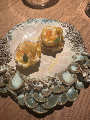 Read moreI had read about the restaurant in a magazine and checked several online reviews before booking the large Valentine's menu, so we had high expectations for a special evening. Unfortunately, the experience was disappointing. Out of the eleven dishes, only two stood out as coherent and enjoyable; the rest either lacked flavor or had overpowering notes of saffron or orange. At times, we found ourselves wondering whether the kitchen had tasted the food before serving it, especially with the heart dish, which was particularly confusing.