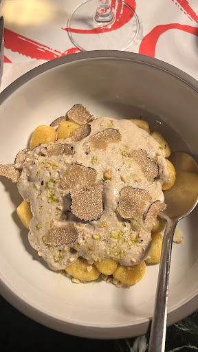 Read moreWe don't leave a lot of reviews, but feel we should let others know how good this place is. First off, the drink selection and the menu are works of art. It is patterned after Hieronymus Bosch's Garden of Earthly Delights, one of my favorite paintings. The drinks did not disappoint. We were fairly boring and ordered versions of our usuals, an Aperol spritz and a negroni. But they both had a little something extra that set them apart and above. The spinach arancini with feta cream, arugula, and truffles was delicious. We also enjoyed pan fried gnocchi with mushroom sauce and truffles (leave off the pickled enoki mushrooms though). And the highlight was the simplest dish, cacio e pepe - positively delicious. The server was very attentive and wanted to ensure that everything was right. Prices are reasonable. Just after sunset, look up above the byzantine church to see...