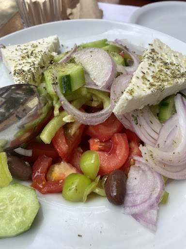 What a find! We were invited in by the host who stood outside where live music was playing on the street and convinced us into trying their menu. We ordered a couple of appetizers and 2 main courses between the two of us. The portions were plenty! The beetroot tzaziki with pita bread was the perfect start to the dinner. The zucchini balls took us by surprise, a lot of flavor and texture packed in those. For the main course, we had veg moussaka which was delicious (and a lot!) and the risotto which was probably the best dish I've had throughout our trip! Creamy and flavorful! The staff was very welcoming & friendly, they gave us our time to enjoy our dinner leisurely. The bill was quite reasonable, but what surprised me was the question of 'do you want to tip', we said yes and the next question was 'how much'. We were planning on leaving a tip for the great service but it's odd to have to answer that verbally instead of selecting it discreetly on the...