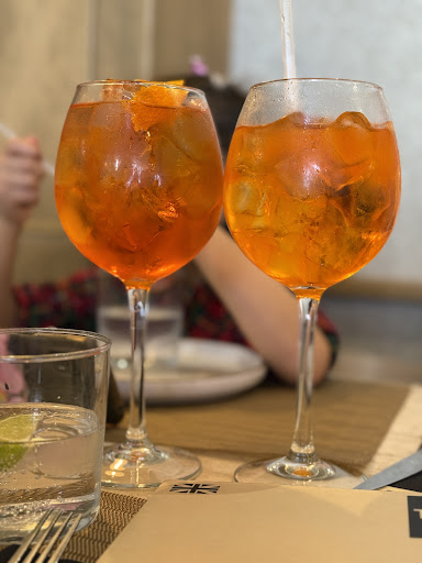 We ordered a burrata salad, which was tasty, an Aperol, and two pizzasâone Caprese pizza for my 6-year-old daughter and another pizza in a Greek style.
