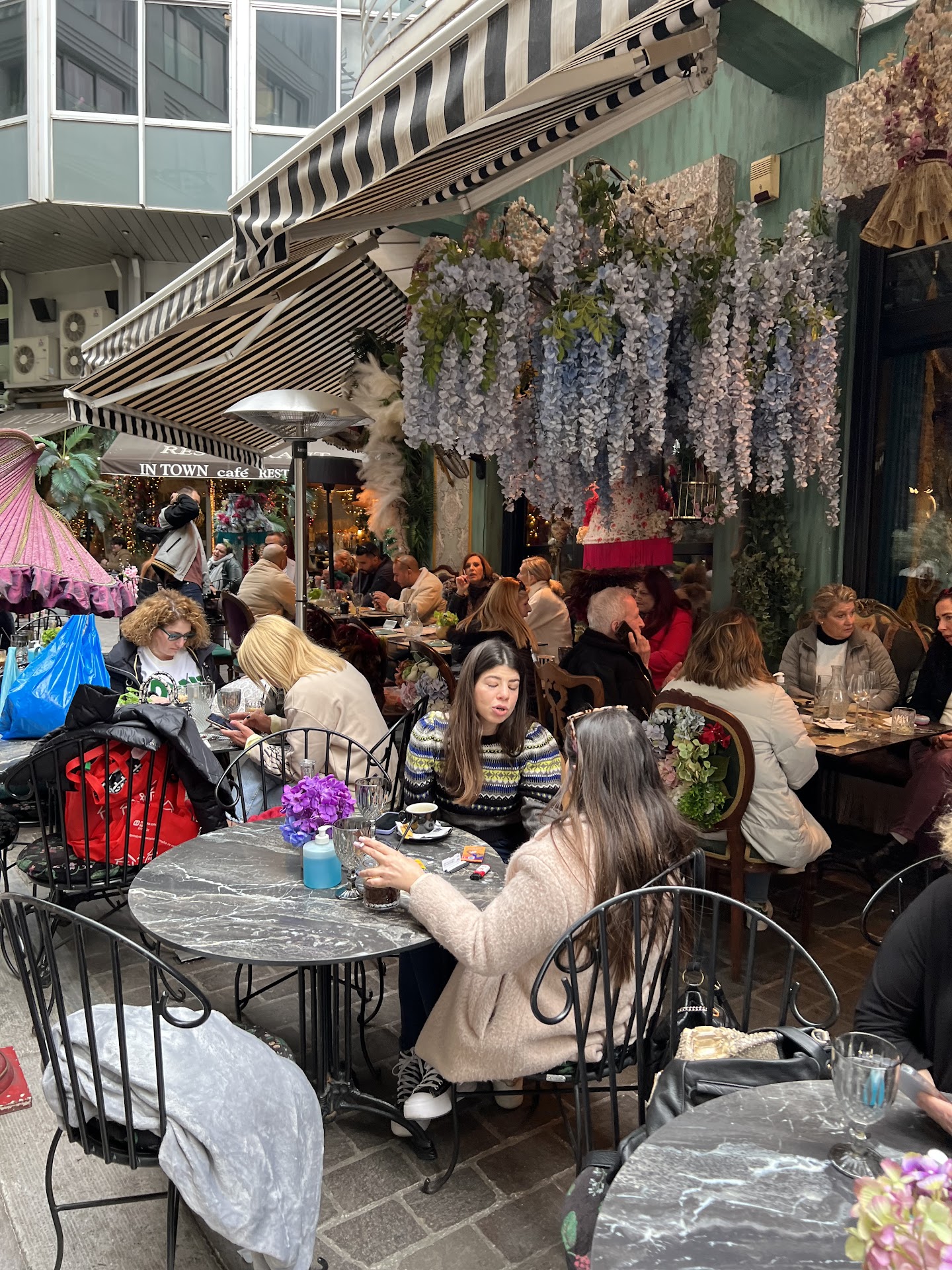 Tazza is an incredible cafe/restaurant on the corner of Petraki and Pentelis street, across from the hotel. From the outside, in the street cafe you will see colorful bunches of flowers, and lamps intermingled with the tables. But the true secret is inside (as pictured) where it looks like you have gone back in time. I would make every attempt to eat inside if you can, just to see what is on display while you eat. On top of the visuals, the service and food here is top notch. For only 1,50 euros you can get a basket of bread, some spread, and fresh olives. They have a full menu of cocktails, and all of the Greek standards and a few dishes I had not seen in other places. The beef pot roast dish I got with orzo was incredibly tasteful, and the chicken Gyro my wife got was overflowing with meat and fillings! Cottage potatoes came with it, which were surprisingly crisp and fresh. Our greek salad was easily the best we had eaten anywhere in the city of Athens during our week long vacation. This place has presentation, style, and top notch food, and you might miss it on the corner of two alley streets between Ermou and Mitropoleos. Make sure you don't - seek it out! You...