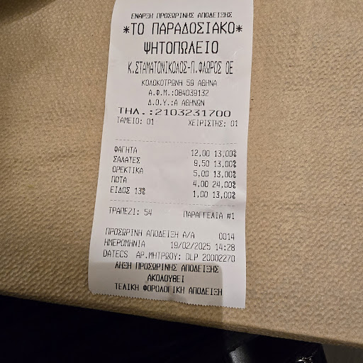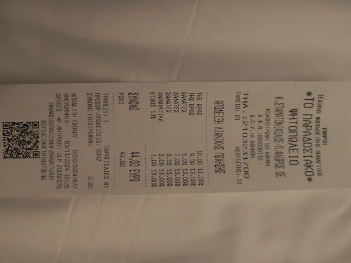 Read moreThis is a simple Restaurant. When it is warm you can sit outside next to the street. Inside the Restaurant is divided into ground floor and second floor where we were sitting. The Service was fast. On the table we got one bottle of water. One smell was enough to detect that was coming out of the pipe although it wasn't easy to detect because on the bottle was written the name of a brand... Then our table received a brown table paper to Cover it. We ordered Tzatziki (5 €) of poor taste and almost only consisting of garlic. The non alcoholic Beer was served in a 0,5 l bottle. For the Tzatziki we have ordered PITA BREAD but without any comment we got a big normal bread. The Lamb (12 €) baked in the oven was of fair taste. The presentation and preparation reminded me at being in a canteen. The potatoes were sweating and looking like being prepared several days before. The colour of it was between grey and a whiter shade of pale. The Greek Salad (9,50 €) was of prepared average. The bill is only written in GREEK LETTERS. Nobody has removed the dishes from...