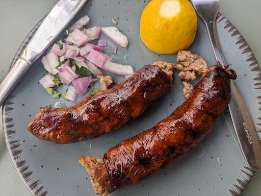 I really enjoyed the sausage: it had a barbecue taste to it, was chunky on the inside. It worked well with the lemon and the onions,...