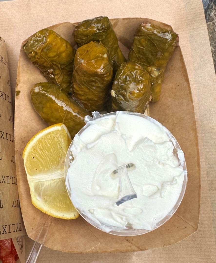 Read moreWe had our last lunch here and it was quite disappointing. The person working on the counter wasn’t friendly at all, and didn’t give us our food to go even though we ordered it that way. We got the Greek dolmas (stuffed vine leaves with rice and herbs, served with Greek yogurt) as appetiser, and we didn’t enjoy them. The sauce was a bit sour, and they were cold (not even room temperature, like straight out of the fridge). We also got two pittas, a chicken gyros (with tomato, lettuce, yogurt-mayonnaise and fries) and a traditional kebab (with tomate, onion, spicy tomato sauce, yogurt and fries). The chicken was really salty, which was a pity as the combination of ingredients was really good balanced. The kebab was better, as the meat was really flavourful and seasoned correctly, but it came with the sour-ish yogurt sauce which we didn’t love. There’s limited seating space upstairs, and a big shared table outside (often packed). It’s not a place that we would be back if we had...