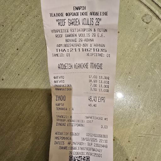 For our last night in Athens my family settled on authentic Italian and we were not disappointed with our decision. We had the most delightful experience at V1935 Roof Garden. This restaurant truly stands out with its excellent atmosphere that transports you to a serene oasis amidst the bustling city. The rooftop setting provides a breathtaking view that perfectly complements the dining experience.