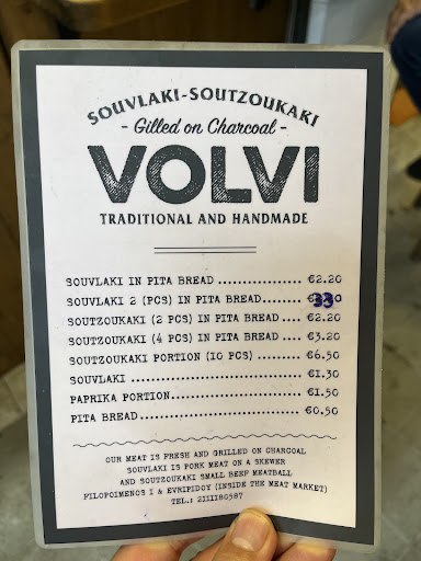 We had positively excellent souvlaki in Greece, both in and outside Athens. Once from another popular Athens stop, next to the desert cafe, LUKUMAΔΕΣ; and from shops in both Delphi and Nafplio. But Volvi deserves the top spot, easily. This little market stall serves fantastic pork souvlaki!
