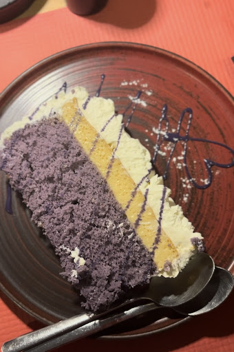 Around 10 min after I sat down at my table, the hostess came to me and said without any intro: âAre you just one person?â I was confused about that question, so I said my friend is late. I ordered a ramen, a beverage. My friend was still delayed, so then I got a desert. Even though I was sitting alone at my table for 1 hour, they brought me a cake with a heart and 2 spoonsđ⌠see the picture. thanks god I was waiting for a friend, not for a date⌠I imagine if someone would wait for a date that doesnât show up - that kind of serving could make a person burst into tears đ