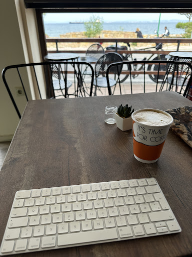 Read moreThis is a perfect spot for a Cup of coffee or a chilled drink! It is next to the Chios Windmills! Sit down and enjoy the sea and the windmills! The waitress was brilliant and speaks English! I had a lovely Greek coffee and some delicious biscuits! Highly...