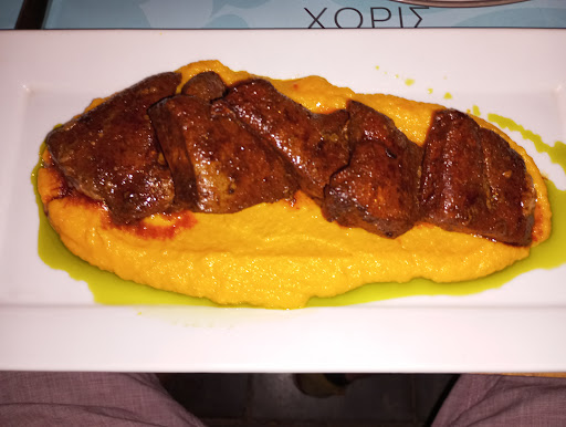 My wife and I cannot say enough good things about this amazing restaurant! We would have given it 20 stars if we could. This restaurant is a hidden gem that is located off the beaten path and needs to become known by everyone visiting this gorgeous island. The ambience and the service were great. But, the food was just over the top exceptional. Everything that we ate was based on local products, and local traditional Greek/Chios menu items, but with a refreshing spin that they put in the taste of each dish. We absolutely loved the mushroom appetizer (that is a spin on gyro), the orzo with beef and the grilled chicken fillets with their version of olive oil/lemon sauce. They ended the meal with a gift dessert of refreshing carob cream & almond crumble with a sweet quince on top. Very elegant tastes that created an unforgettable end to our wonderful trip to this beautiful island. If you are in Chios, this is a necessary restaurant choice...