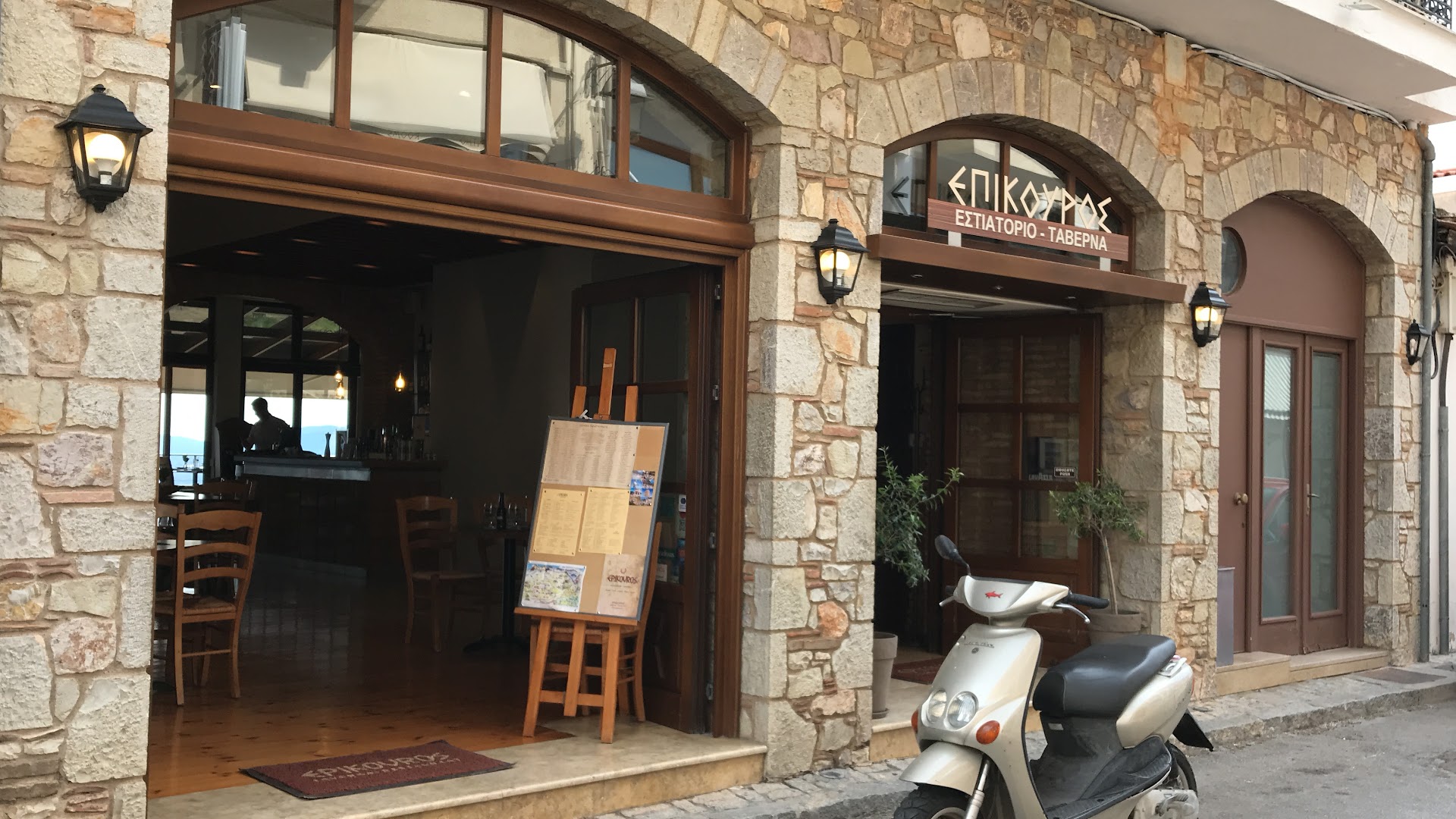 Read moreThe best place to eat and enjoy your food in Delphi! You can easily find the restaurant in this small city. The spot is beautiful and if youâre dining on the terrace you can witness the most spectacular view. There wasnât loud music nor annoying waiters. In fact, they were attentive and nice. The Epikouros Restaurant offers the opportunity to sample an array of dishes of flavoursome traditional cuisine. !Before you order! Bare in mind that the portions are LARGE, and they also serve garnish with main dishes. What we love about Greek food is The Dakos Salad! It is an absolute must to try! We also love kleftiko - slow cooked lamb with traditional seasoning. And Souvlaki is the best dish for your children - fat less meat cooked on open fire and they serve it with fries and cooked veggies. We also wanted to try something different and ordered local Delphi salad, and, as for me, it is much like Caesar salad, but lighter. While we waited for our food they made us a gift- traditional Greek dip - Tzatziki - a dip of yogurt, cucumber, carrot, garlic and oregano. It was delightful. And in the kitchen end, they presented us sliced melon and watermelon. Maybe itâs not much, but it does show their attitude So, as you can guess, I HIGHLY...
