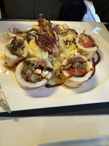 Cute and quaint, family friendly restaurant at the far end of the main strip from our hotel. Enjoyed the stuffed pork chop (and my friend had the stuffed calamari). The pork was juicy and well seasoned. I was left wanting more of the mustard and would have preferred some additional served on the side as it was the right combination of flavors with it, the cheese and the roasted red peppers. While the french fries were hand cut and homemade, I would have preferred something else especially since I am from the US and can have fries any time. Options like a Greek side salad or fresh seasonal veggies would have made this dish more complete. The dining room was simple but elegant all while being family friendly. Finally, I love olive oil served with my bread. Maybe even with some balsamic vinegar. You get olives, but no oil. They are wonderful, but bread and oil…yummm! Enjoy this...