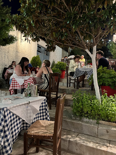 We knew we were eating early for Greek time, but after a morning in Athens and a beautiful drive (despite on and off downpours and sunshine), we were hungry! Read other reviews, and even with a 10 percent discount offered by our hotel for another restaurant, we liked the pictures we saw of quaint two top tables on a balcony. (And unlike another restaurant close by, the seating and view were not the only pictures; the food looked good too!) The restaurant was up a set of steps, or down if you come the other way. Town wasn’t that busy with tour groups but I can imagine the location is a little quieter than right off the main roads. We were the only ones there and the service made us feel like we rented the place out for just us. The gentlemen were so nice and made us feel right at home Oh, and most important, of course, the food and house red was great! I had the lamb chops, which were tender and nicely seasoned. Their was a good mix of meat and just enough fat for that flavor we all like when eating off the bone. My partner had the stuffed tomatoes; “they were yummy!” Seasoned well, no meat, for the vegetarians out there. And the potatoes on the side were full of flavor and had a really good red sauce. Unfortunately, we weren’t dining with our phones, so no pics, but the other reviews are accurate. Lastly, we opted for the yogurt dessert, which I’m not usually a big fan of yogurt or apricots, but this was some homemade local cultured real stuff, and some bites tasted like a...