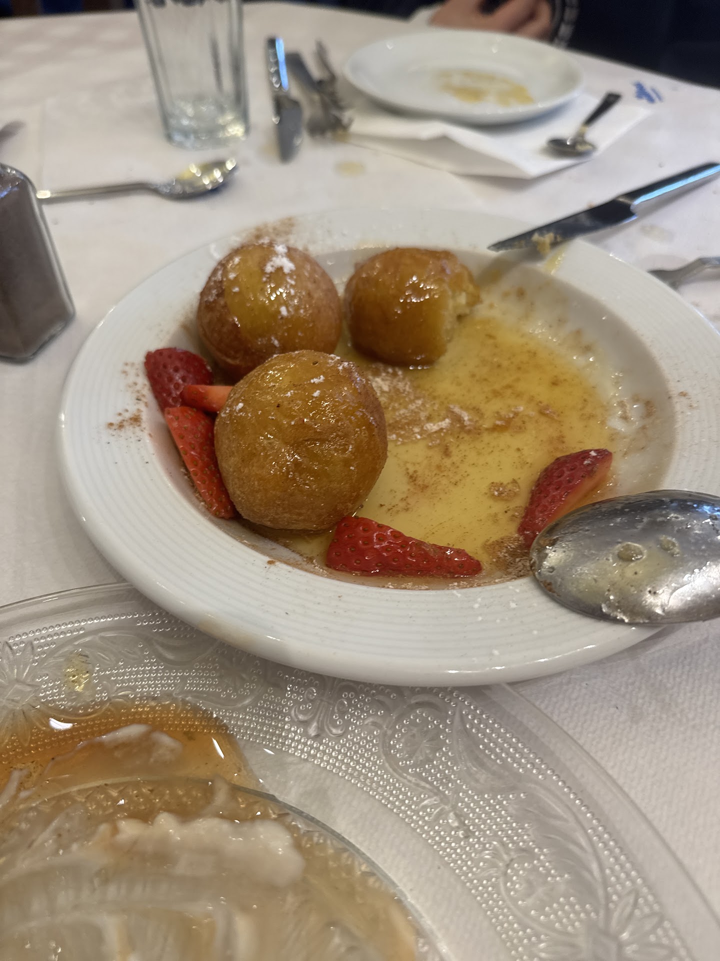 We had not ordered any desert but the charming owner brought us an extraordinary desert of yogurt with candied orange and lemon rind, with honey and finely cut strawberries: what a magnificent combination this was!