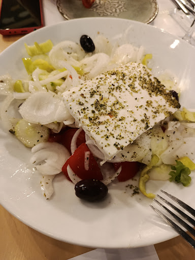 Read moreI never thought that a simple greek salad can ruin my night. I swear I could have swam in the sea of onions found in that salad. It was a complete insult for me. A whole white onion chopped with a few pieces of cucumber, tomato, olives and the thinnest slice of cheap cow cheese. And imagine it was 9 euros, 9 euros for a piece of white onion! Also it was poorly seasoned, they were savvy on the olive oil. Also service was poor, no napkins, especially water napkins if you eat sea food, no salt, pepper, toothpicks, no complimentary water, bread, small piece of butter or olives (for which I would have gladly pay a symbolical price) If you go to this restaurant just skip the side dishes and go straight for the main dishes like sea food or meat, take the cheap house wine 0.5l for 6 euros and you'll be on a horse. No complains there, the sea bass and octopus were perfect, sadly ruined by that so call onion...